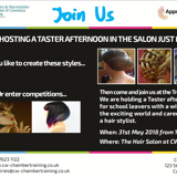 Chamber Training is hosting a hairdressing taster afternoon at our training salon in Coventry on 31st May April 2018 from 1pm-3pm. The free taster afternoon is aimed at school leavers with a wish to enter the exciting world and career of being a hair stylist.
